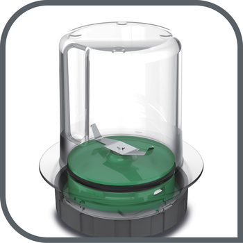 Zahvaljujući dva dodatka, mlinu i seckalici, možete samleti sve začine, zrna kafe, sušeno voće, bademe, lešnike itd. i seckati crni luk, beli luk, začinsko bilje itd.